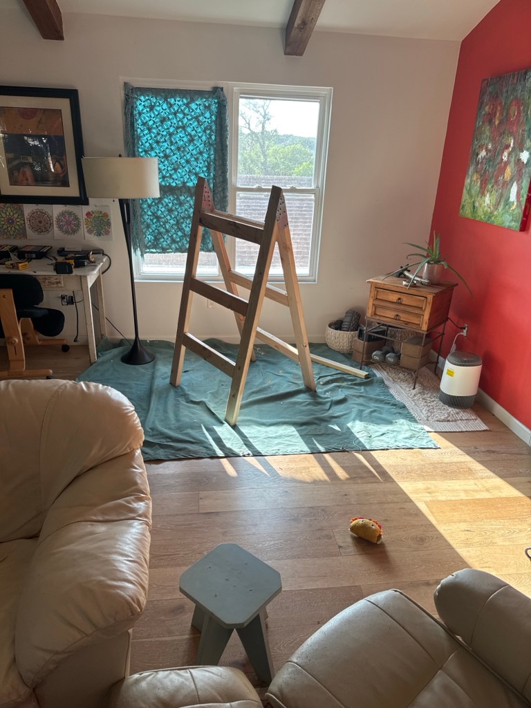 There is the double sided easel built today, and not a carpenter! But wanted to build an easel and paint and we did it